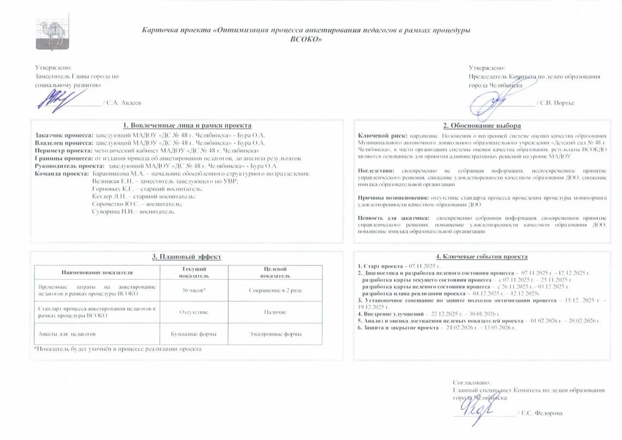 Карточка проекта «Оптимизация процесса анкетирования педагогов в рамках процедуры ВСОКО»